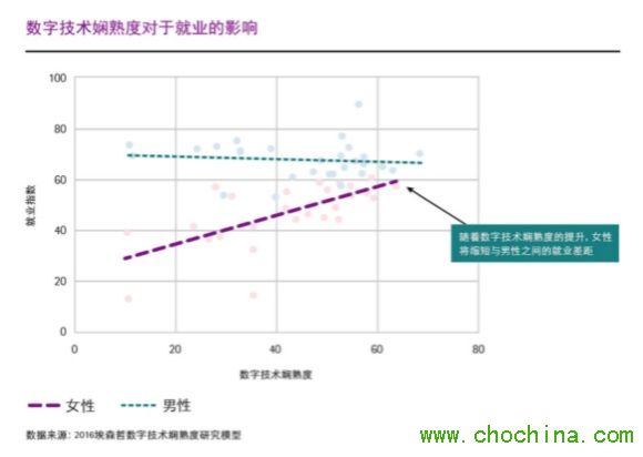 埃森哲發(fā)現(xiàn),如果各國(guó)政府和企業(yè)能夠?qū)⑴缘臄?shù)字技術(shù)嫻熟度提高一倍,發(fā)達(dá)國(guó)家與發(fā)展中國(guó)家可分別在2040年和2060年實(shí)現(xiàn)職場(chǎng)性別平等,這比當(dāng)前速度提高了大約一倍。