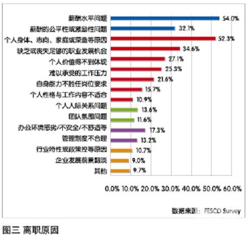 越來(lái)越多的企業(yè)意識(shí)到人才的重要性,不僅更重視對(duì)員工忠誠(chéng)度的塑造,同時(shí)也通過(guò)種種措施來(lái)保證核心員工的留駐。然而,總會(huì)有人因?qū)ζ髽I(yè)現(xiàn)狀不滿而選擇離開,人員流動(dòng)是企業(yè)發(fā)展過(guò)程中的必然現(xiàn)象,適當(dāng)?shù)碾x職率對(duì)企業(yè)的發(fā)展和保持活力是有益的,但過(guò)低或過(guò)高都會(huì)影響企業(yè)的發(fā)展。員工離職的原因多種多樣,其中普遍性的因素有哪些?不同行業(yè)、不同區(qū)域的員工離職原因又有哪些差異?2011年,F(xiàn)ESCO針對(duì)企業(yè)員工離職狀況開展了調(diào)研,以期對(duì)企業(yè)人才的選用育留提供依據(jù)。
