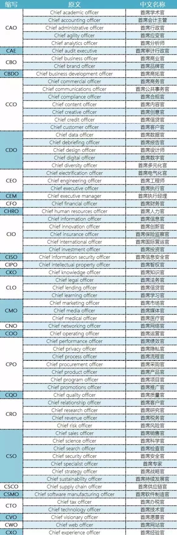 部分C-頭銜及其對(duì)應(yīng)職位