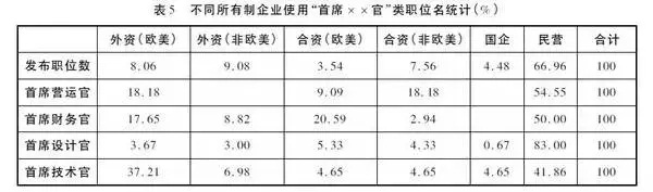 學(xué)者殷志平統(tǒng)計(jì)的首席XX官發(fā)布職位比例