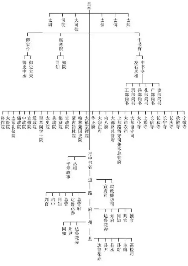 元朝主要職官隸屬簡(jiǎn)表