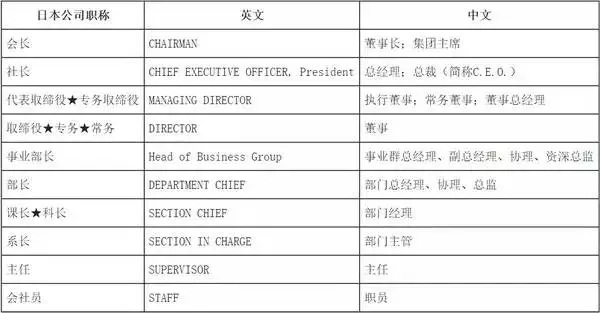 日本公司職稱對(duì)照表