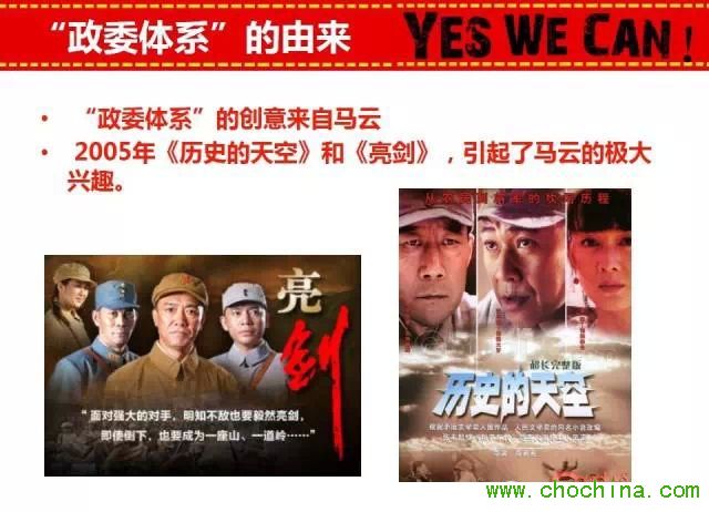好繞,我也有點暈,不知道大家明白沒。大體是這個意思:政委和員工、兩個人之間可以達(dá)到完全可以背靠背的程度,員工信任政委在任何時候的任何決定,尤其是阿里的發(fā)源地,B2B那邊的政委,對于團(tuán)隊的把握會真的接近于電視里面戰(zhàn)斗部隊的程度。